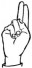 На ћирилици написано РАДНА МАНОЈЛОВИЋ састоји се из 15 слова [?]. Исписано ћириличном једноручном азбуком за глувонеме: